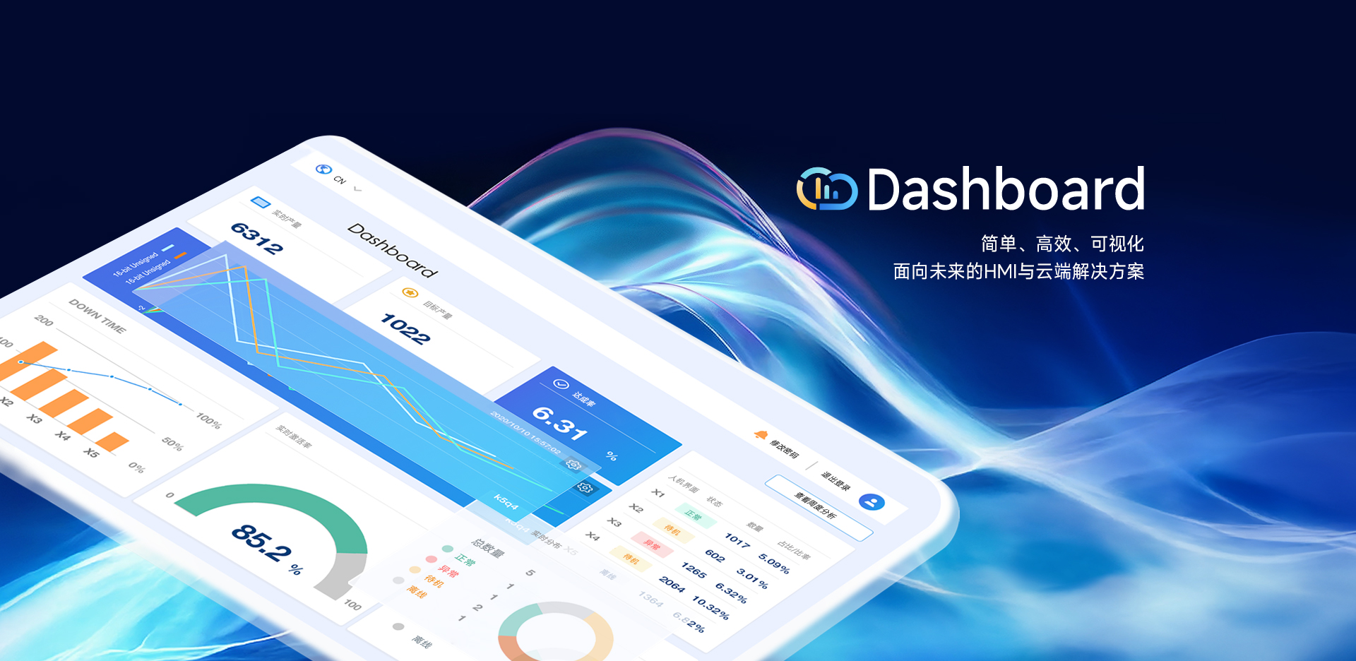 Weincloud 集結EasyAccess2.0遠程監控服務及Dashboard云端儀表服務,將設備資料數據上云并以視覺化呈現,協助管理者實時掌控現場產線狀態。